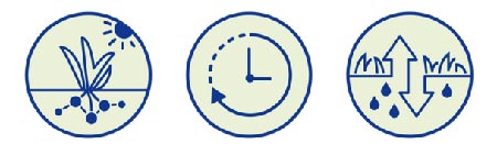 - reguliert den Wasserhaushalt des Rasens und sorgt so für einen natürlichen Schutz in Trockenphasen